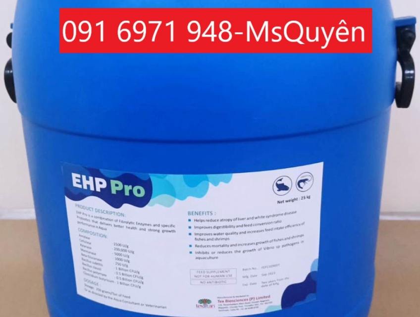 Sản phẩm EHP pro là sự kết hợp cân đối giữa các chủng vi khuẩn cơ lợi và các enzyme, giúp giảm hội chứng teo gan (hoại tử gan tụy, do nhiễm khuẩn Vibrio parahaemolyticus)và hội